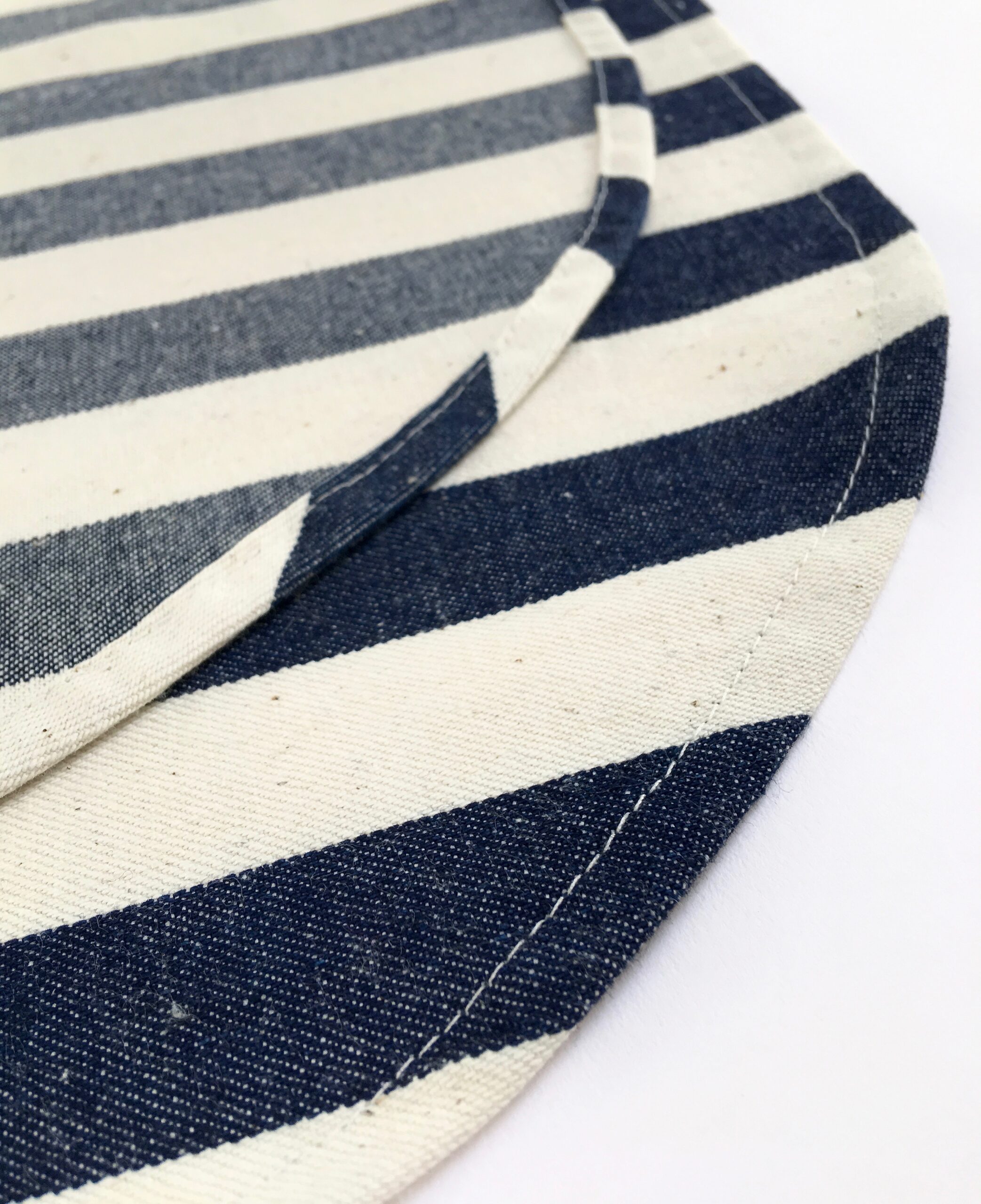 This is my favourite way to make light work of turning and stitching the hem. At the time of writing I was stitching 4 stripey aprons. I was doing this factory-production-style and I found this to be the easiest way to stitch a curved hem. It gives a consistent result, so all the curves are lovely and even!